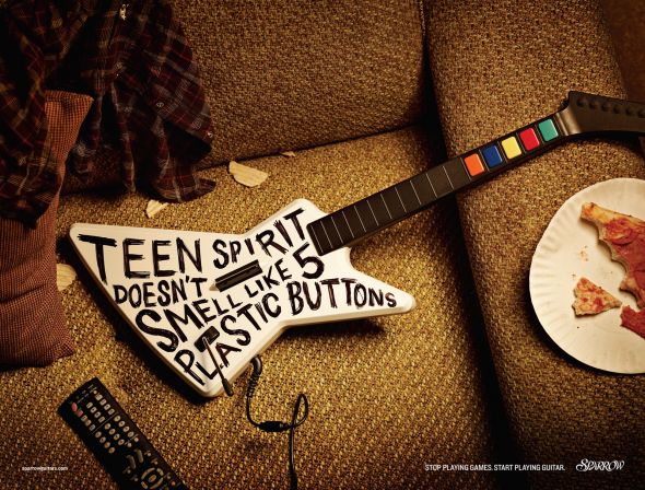 Guitar Hero has had a mixed reception from actual guitarists, some considering it a boon and others a burden to true music. Sparrow Guitars has made their position clear with this series of ads.