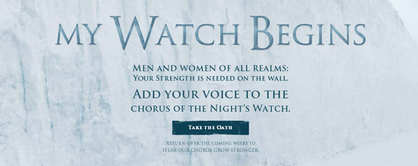 In anticipation of third season of Game of Thrones, HBO has launched a destination URL called My Watch Begins where fans can record the oath of the Night’s Watch.