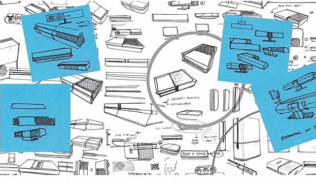 The design team of about 30 people started by sketching out versions of the console and sent them to an in-house modeler to build prototypes. After that, they tested them in various environments to see how they would fit in. They then determined how internal parts would fit into the console. Ledbetter said that the design team also went through more than 200 different controller designs before accepting the current Xbox One controller.